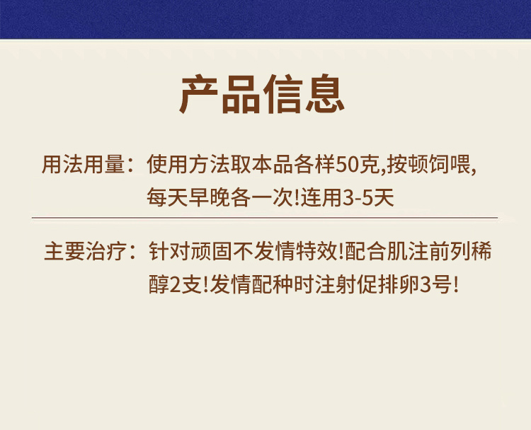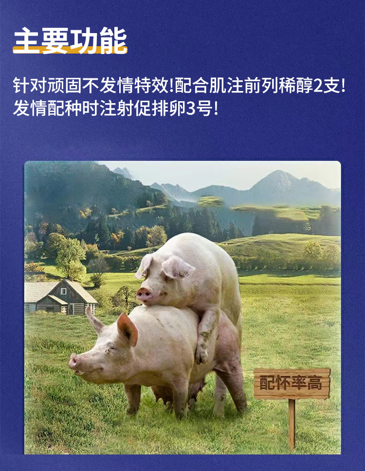 產(chǎn)品簡介:針對頑固不發(fā)情有特效,配合肌肉注射前列稀醇2支,發(fā)情后配種前注射促排卵素2支即可;