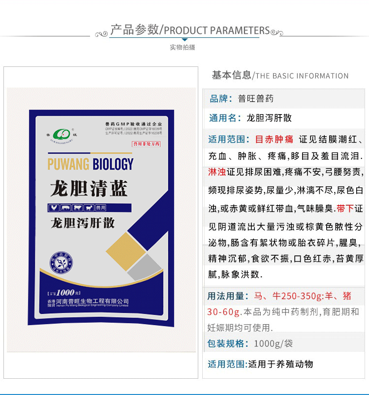 龍膽、車前子、柴胡、當歸、梔子、生地黃,甘草、黃芪、澤瀉、關木通、金銀花、牛黃、促肝細胞生長素等,