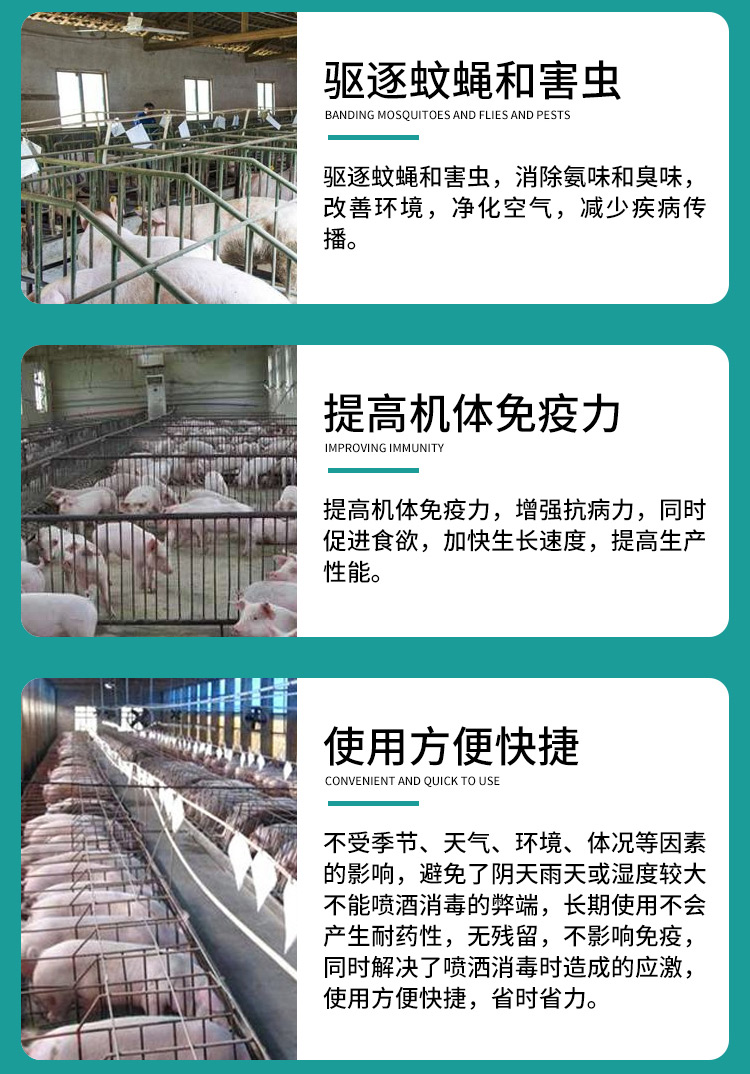 3、驅除蚊蠅,降低舍內(nèi)氨味,凈化舍內(nèi)環(huán)境;