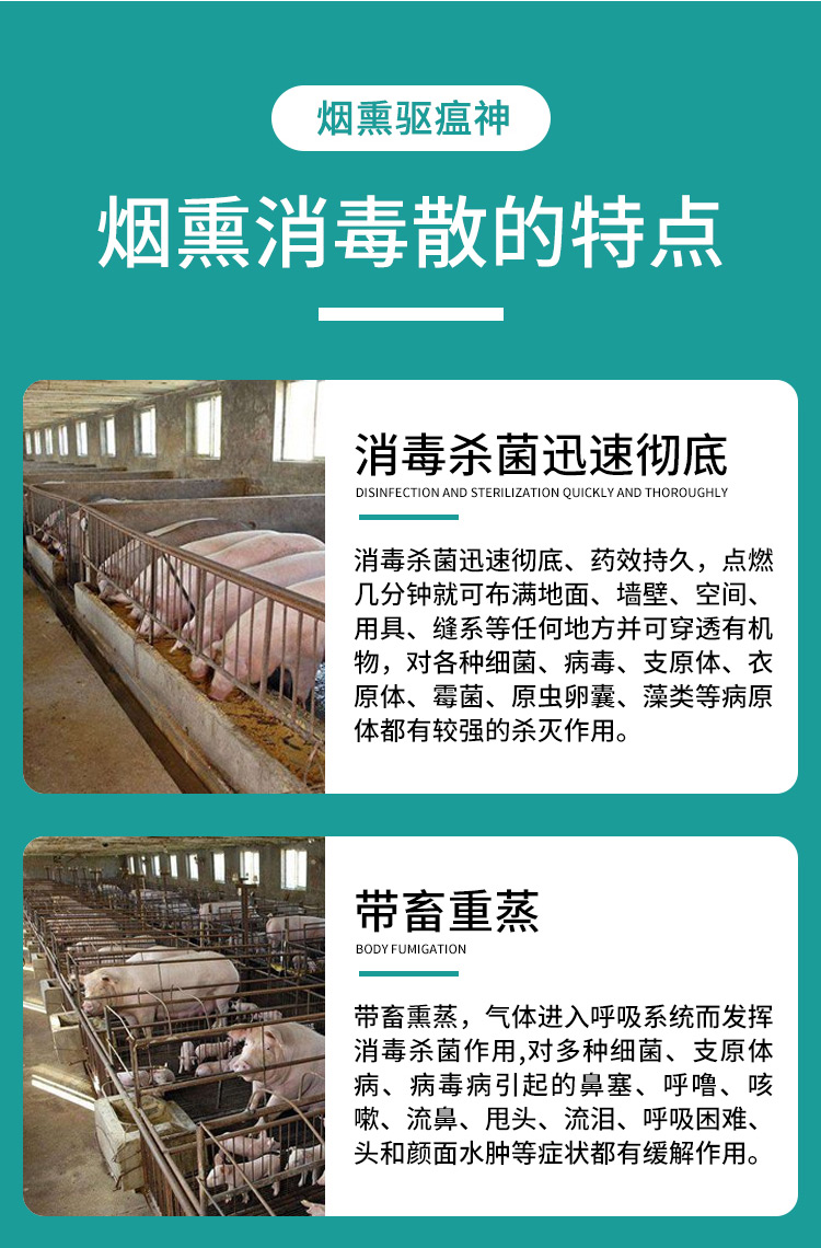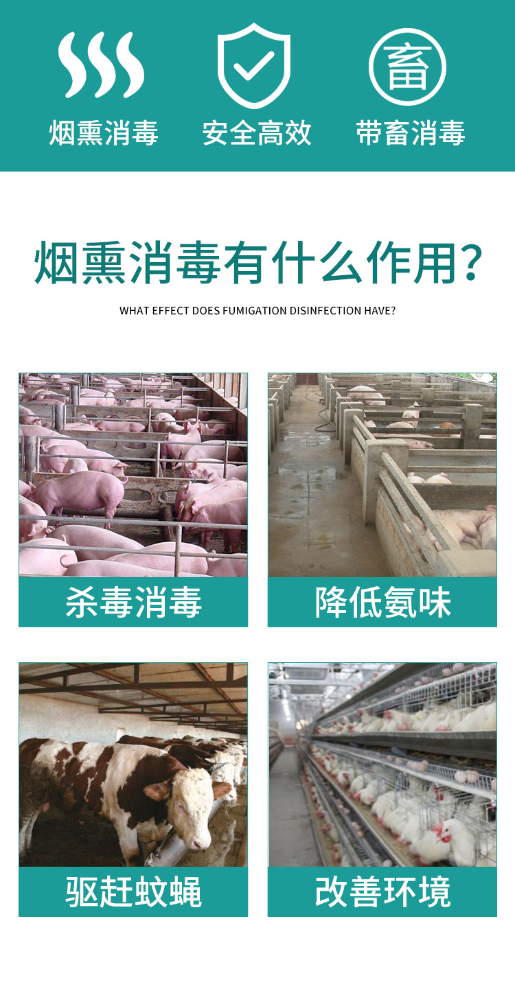 1、煙熏消毒360度無死角,舍內(nèi)15分鐘達到藥效高峰;