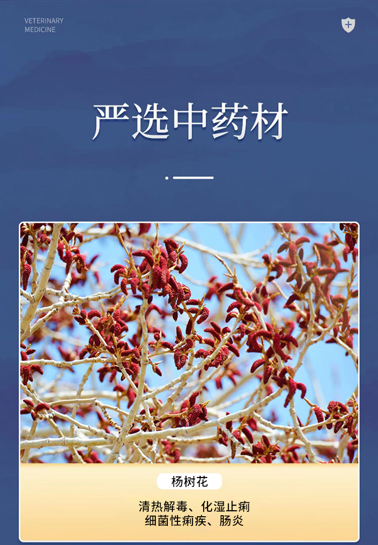 【主要成分】楊樹花、黃連、黃芩、黃芪、黃柏、梔子、白頭翁、乳酸菌、芽孢桿菌、復(fù)合有機酸、消化酶等。