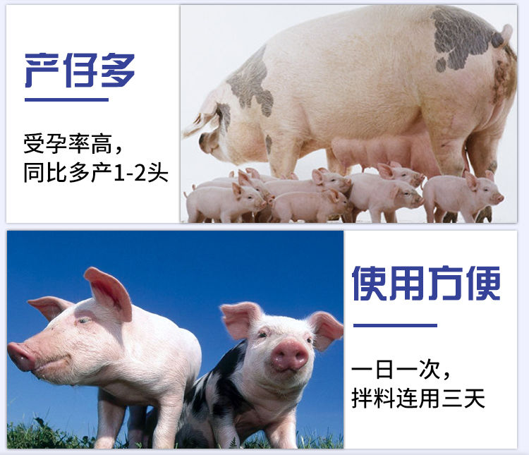 促進(jìn)母畜發(fā)情及同步催情,使發(fā)情期延長,提高受胎率和產(chǎn)崽數(shù)