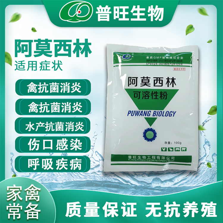 【作用與用途】β-內酰胺類抗生素。用于治療雞對阿莫西林敏感的革蘭氏陽性菌和革蘭氏陰性菌感染。