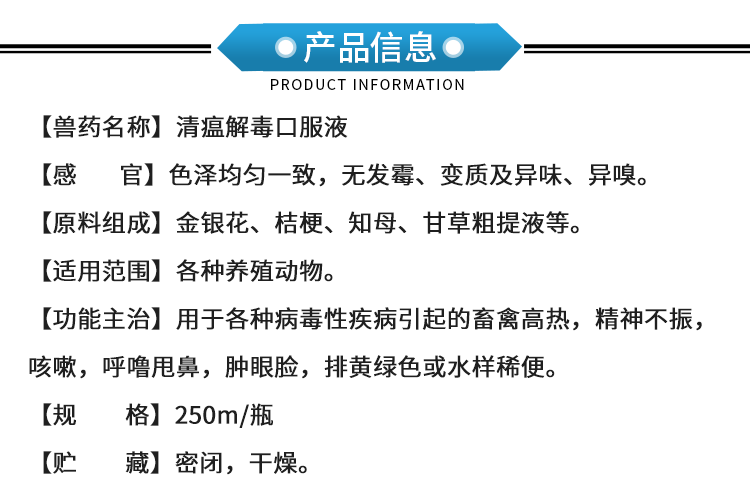 【獸藥名稱】清瘟解毒口服液
