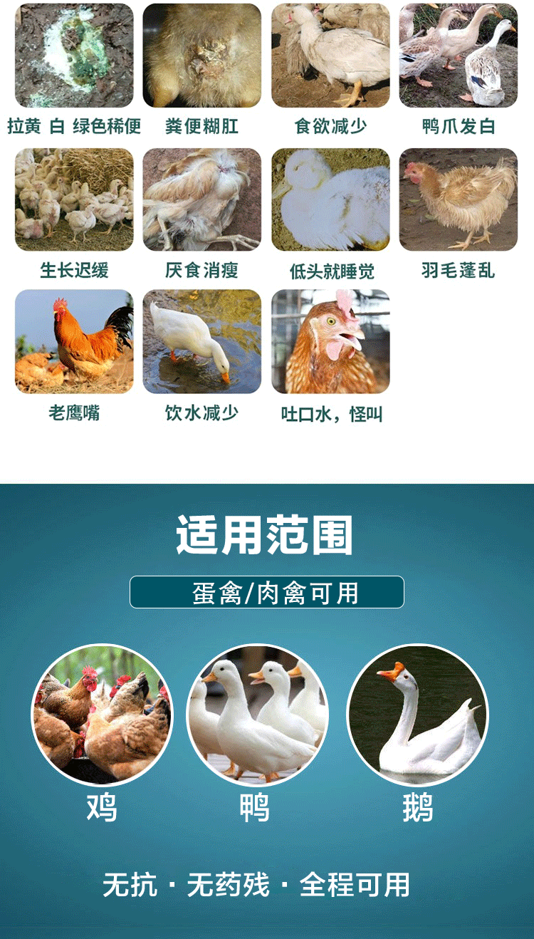 【適用范圍】益氣消腫,健脾、健胃開食、清胃、平肝、強腎、解毒護心的作用,從而達到平衡陰陽,體病同治的作用,臨床對于肌胃炎、腺胃炎、采食量下降,免疫抑制,病毒感染有很好療效。