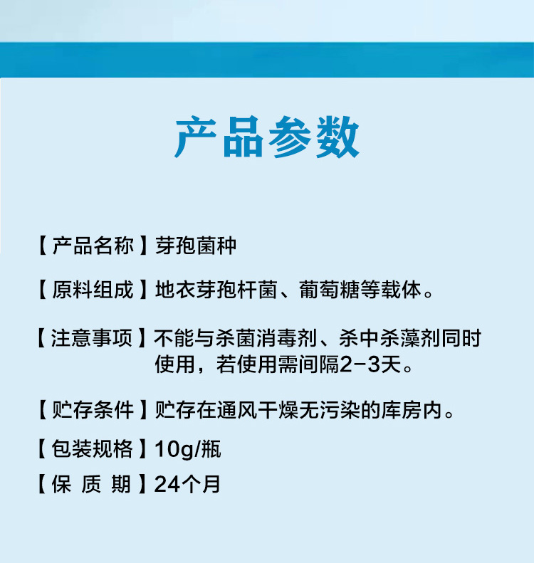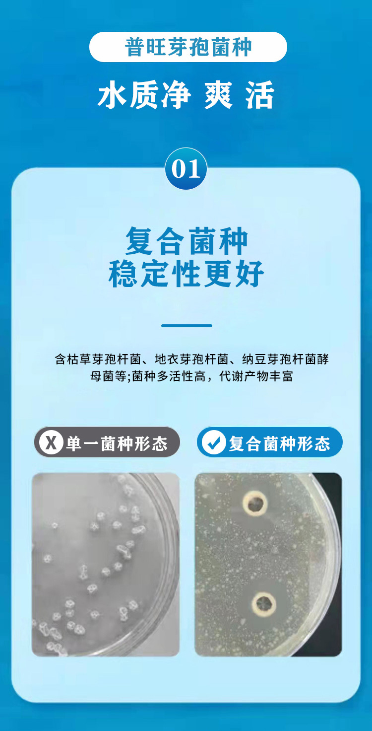 產(chǎn)品簡介:普旺芽孢菌種水產(chǎn)藥水產(chǎn)營養(yǎng)抗應(yīng)激 復(fù)合菌種凈水調(diào)水降低氨氮抑制藍(lán)藻 分解殘餌調(diào)節(jié)水質(zhì)讓水質(zhì)凈爽活