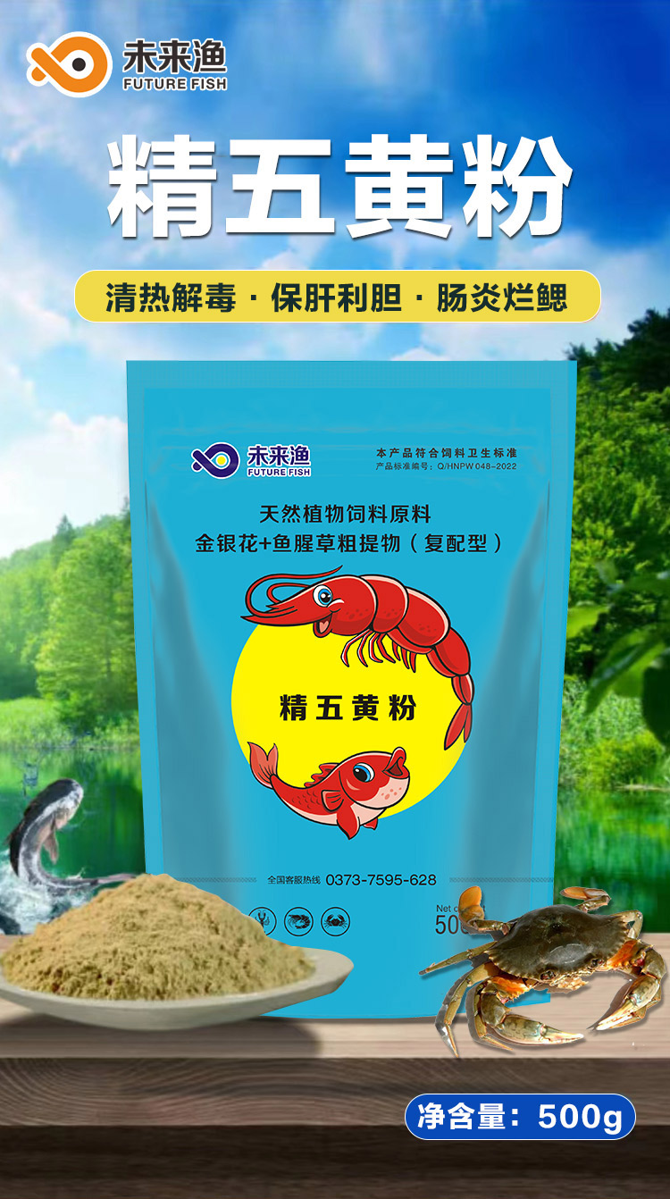 產品簡介:精五黃粉 清熱解毒 保肝利膽 腸炎爛鰓 增強體質 水產養殖常備