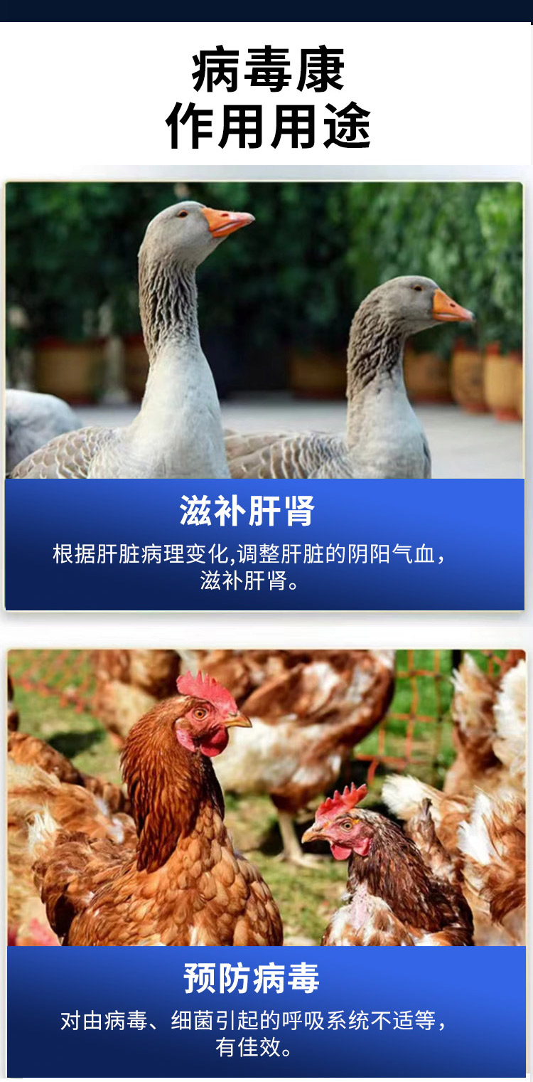 病毒康具有抑菌抗病毒、提高免疫力、提高機體抗氧化能力、提高畜禽生產(chǎn)性能和改善畜禽腸道微生態(tài)等生理功能。