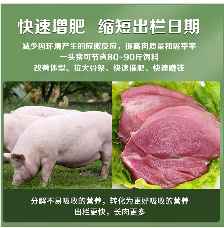 產品簡介:普旺新版GMP獸藥廠家肥無憂長肉快早出欄,益生菌促進營養吸收,快速增肥,縮短出欄日期,減少因環境產生的應激反應,提高肉質量和屠宰率,一頭豬可節省80-90斤飼料,改善體型、拉大骨架、快速催肥、快速賺錢。