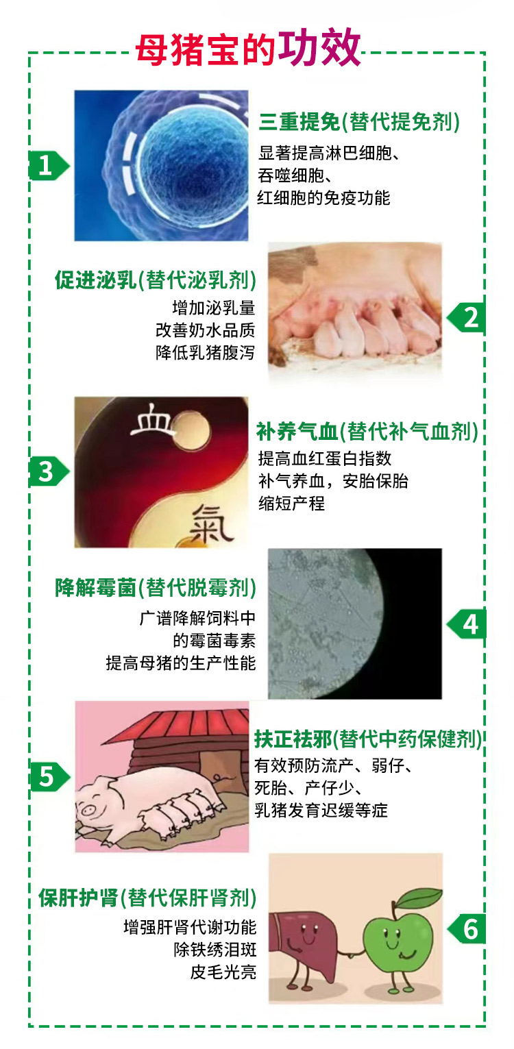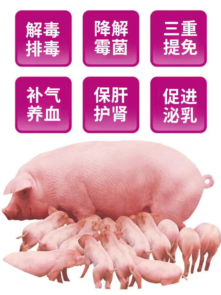 產品簡介:解毒排毒 降解霉菌 三重免疫 補氣養血 保肝護腎 促進泌乳 氣血雙補---發情好 益肝健脾---吃的好 暖宮安胎---生的好 增免排毒---健康好 母畜必備---效益高