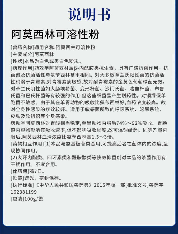 阿莫西林呼吸系統感染泌尿系統感染畜禽通用