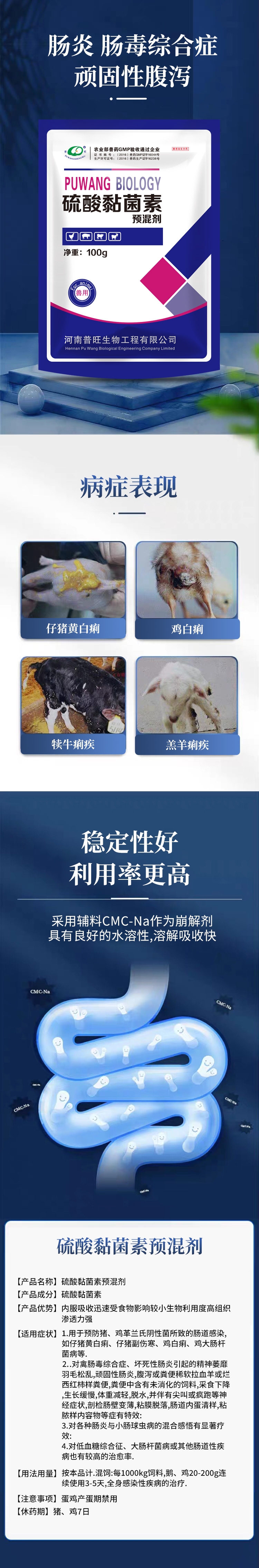 硫酸黏菌素預混劑大腸桿菌病細菌性腹瀉病毒性腹瀉畜禽通用