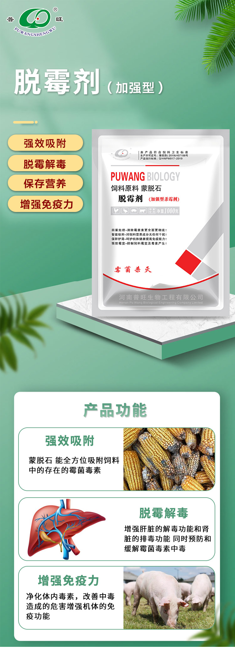 產品簡介:本品適用于黃曲霉毒素、玉米赤霉烯酮、嘔吐毒素等各種霉菌毒素污染的豬飼料、禽料、牛料。