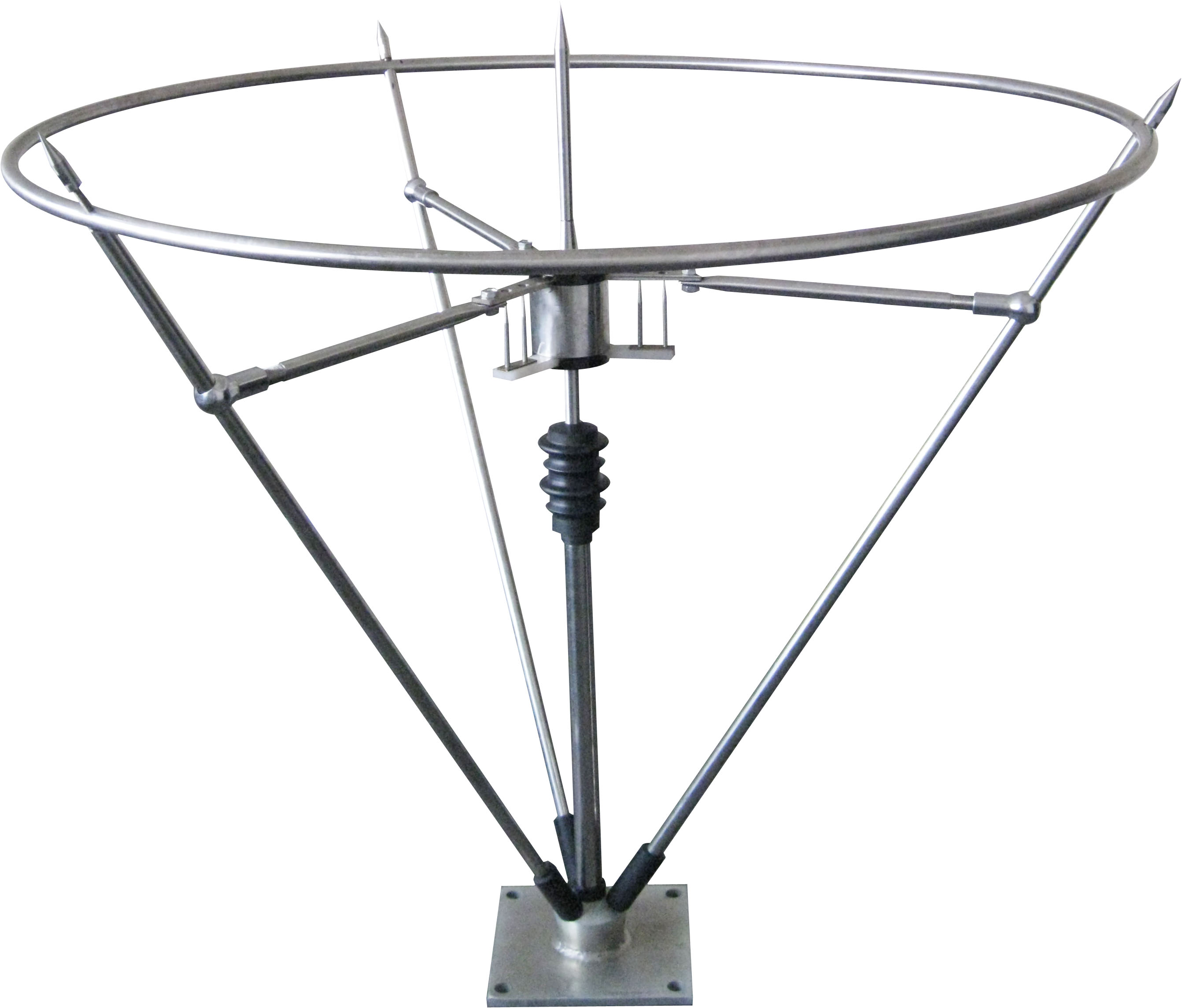 ● 可控放電避雷針針頭要求可控放電均壓環(huán)水平,主放電針在鉛垂方向。不允許在避雷針及其支柱上懸掛電話線、廣播線、電視天線及電力架空線等。